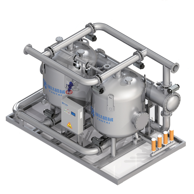 - FYP型壓縮熱再生吸附式壓縮空氣干燥機(jī)是利用空氣壓縮過(guò)程產(chǎn)主的熱量對(duì)吸附劑進(jìn)行再生 ,然后需要~1-3%的凈化壓縮空氣減壓進(jìn)行冷卻,這樣設(shè)計(jì)的目的是利用壓縮空氣系統(tǒng)自身的熱源使吸附劑得到充分脫附,確保露點(diǎn)溫度在滿足用戶要求的基礎(chǔ)上